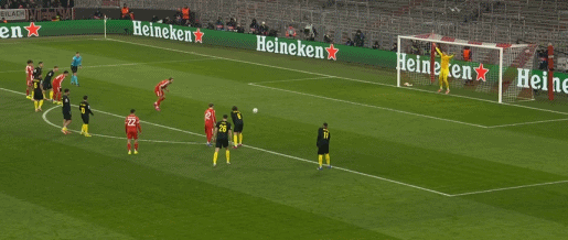 本赛季表现神勇的卡尔,在第39分钟人球分过杀入圣吉罗斯联合禁区,随后被防守球员拉拽倒地,但主裁判没有任何表示,1分钟之后,拜仁右侧角球开出,格雷罗前点甩头攻门,但皮球稍稍高出横梁,双方带着0-0的比分,回到了中场更衣室。